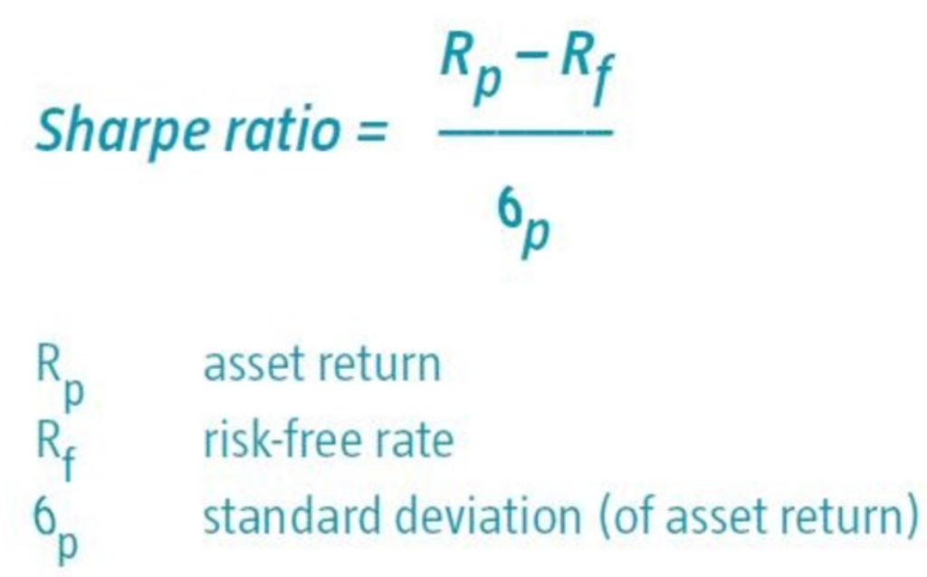 The Sharpe ratio describes the extent to which an investment compensates for extra risk. This ratio is also called the risk-return ratio.