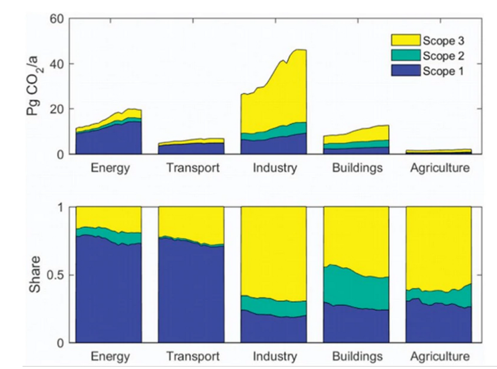 Scopes 1-3 emissions of the five IPCC sections over the period 1995-2015, calculated using EXIOBASE 3
