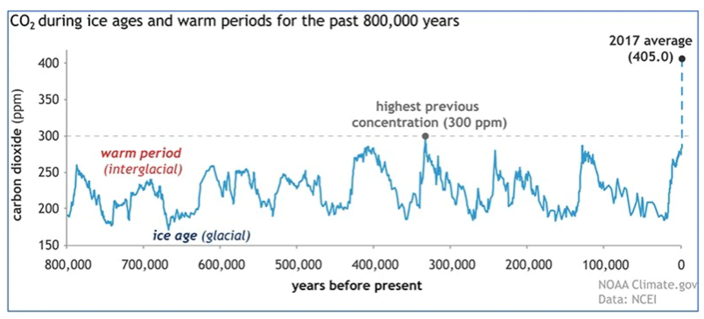 The principal cause of global warming remains CO2 produced by burning fossil fuels for electricity, heating, cooling, and transportation, studies show. Research by the Potsdam Institute for Climate Impact shows that the level of 405 parts per million (ppm) of carbon dioxide recorded in the atmosphere in 2017 was last seen on Earth three million years ago. At that time in the Pliocene Era, before humans had evolved, the average surface temperature was 2-3 degrees Celsius higher than pre-industrial levels, and the average sea level was up to 25 meters above what it is today.