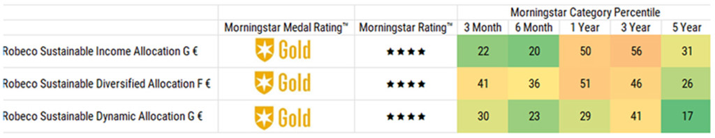 All Robeco’s Multi-Asset funds have exhibited strong long-term performance1 and been assigned the Gold Morningstar Medalist Rating™, as at 31.03.24.