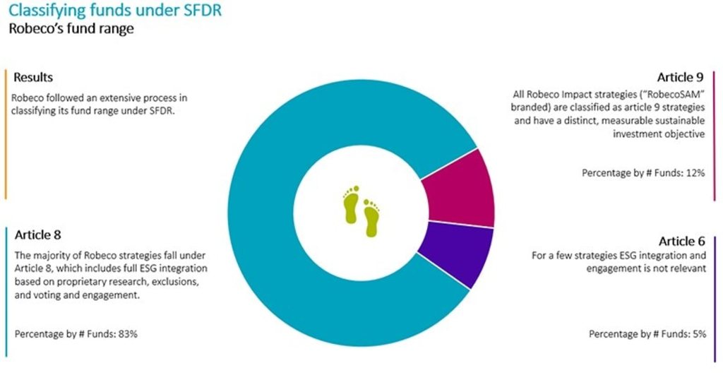 Le champ d’application de cette réglementation est très large et s’applique entre autres aux gérants d’actifs, fonds de pension, banques et compagnies d’assurances européennes. Un aspect essentiel et très visible de ce nouveau règlement concerne la classification des fonds et des mandats en trois catégories, présentées dans les articles 6, 8 et 9.