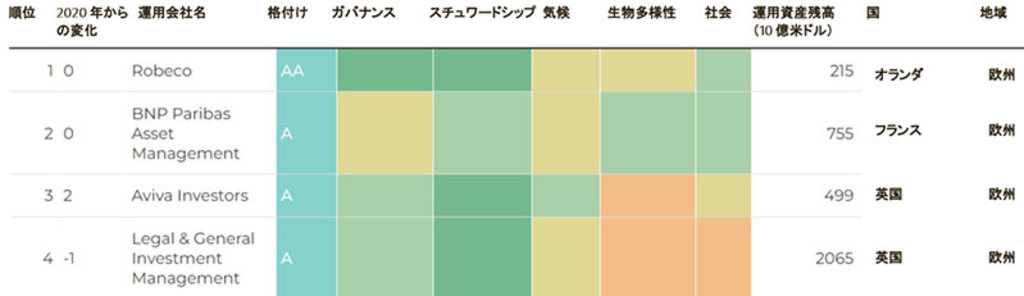 また、投票による年次評価に加えて、「アセットオーナー情報開示プロジェクト(AODP)」を運営しています。このプロジェクトでは、世界の大手資産運用会社75社を対象に、ガバナンス、気候変動、人権、労働者の権利、生物多様性に重点を置いて、サステナブル投資慣行に基づくランキングを毎年公表しています。