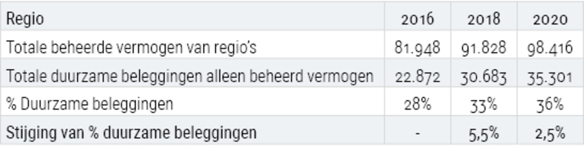 Tabel 1: Omvang van het vermogen dat duurzaam wordt beheerd