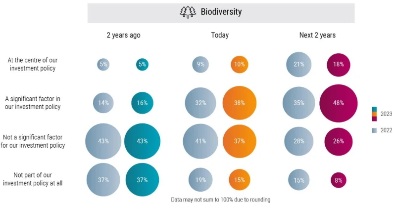- 66 % der befragten Anleger sagen, dass Biodiversität in den nächsten zwei Jahren ein wichtiger Bestandteil ihrer Anlagepolitik sein wird.