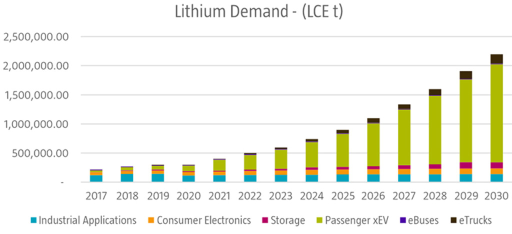 Figure 1 Booming business – lithium demand in electric vehicles continues to rise