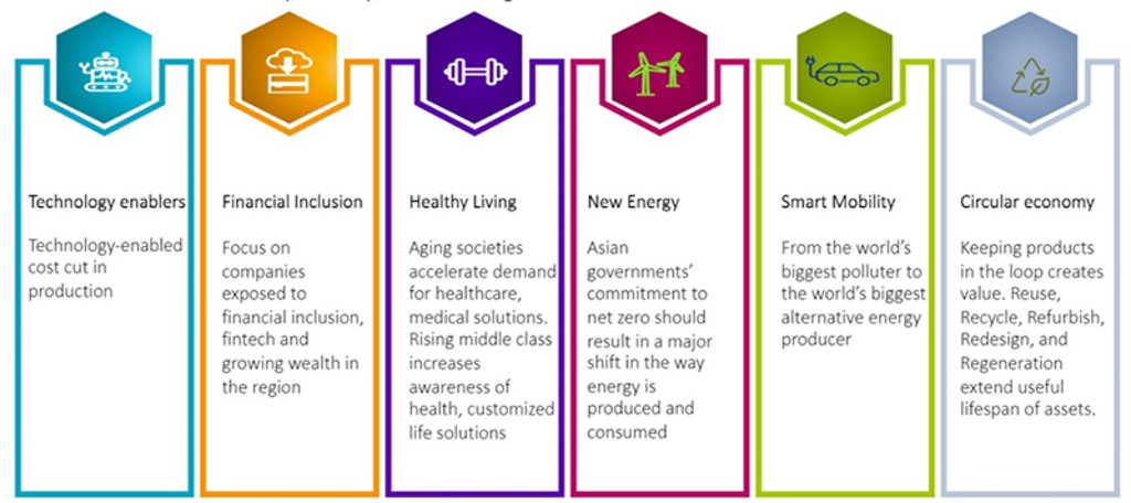 Thèmes d’investissement clés de la stratégie Robeco Sustainable Asian Stars
