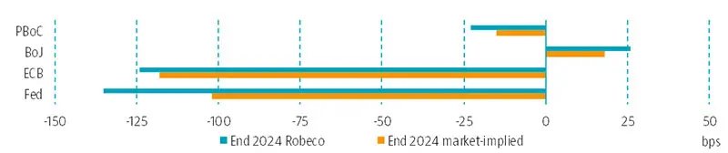 Source: Bloomberg, Robeco, change by end 2024, based on money market futures and forwards; 9 February 2024