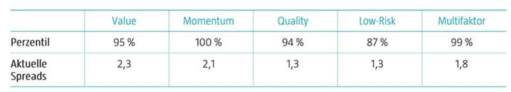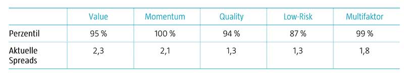 Tabelle 1 | Faktoren sind im historischen Vergleich attraktiv bewertet