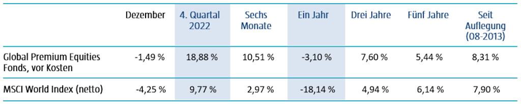 - Global Premium Equities mit 15 % Outperformance im Jahr 2022