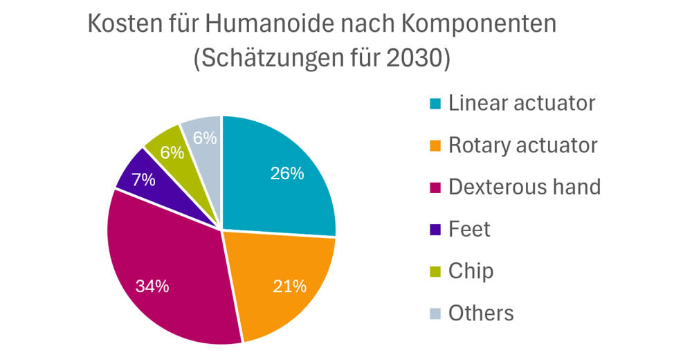 Die für menschenähnliche Bewegungen erforderlichen Aktuatoren haben einen Anteil von fast 50 % an den Kosten für Bauteile.