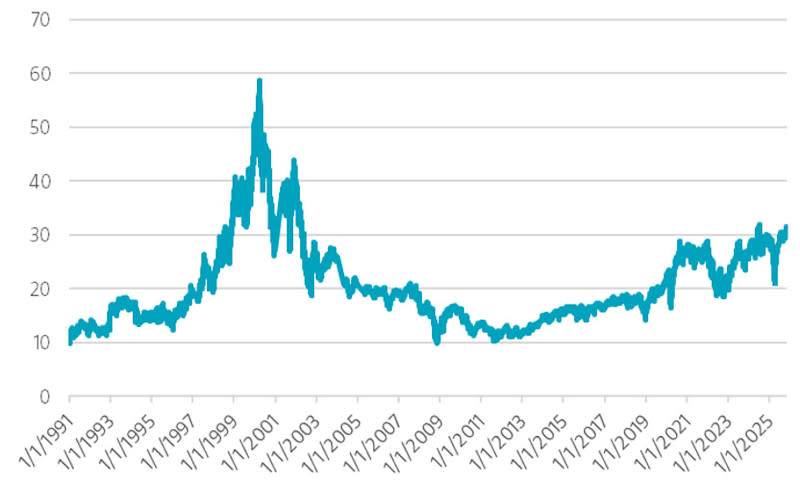 Abbildung 1 – S&P Technology Sector Index zukunftsgerichtetes Kurs-Gewinn-Verhältnis (KGV)