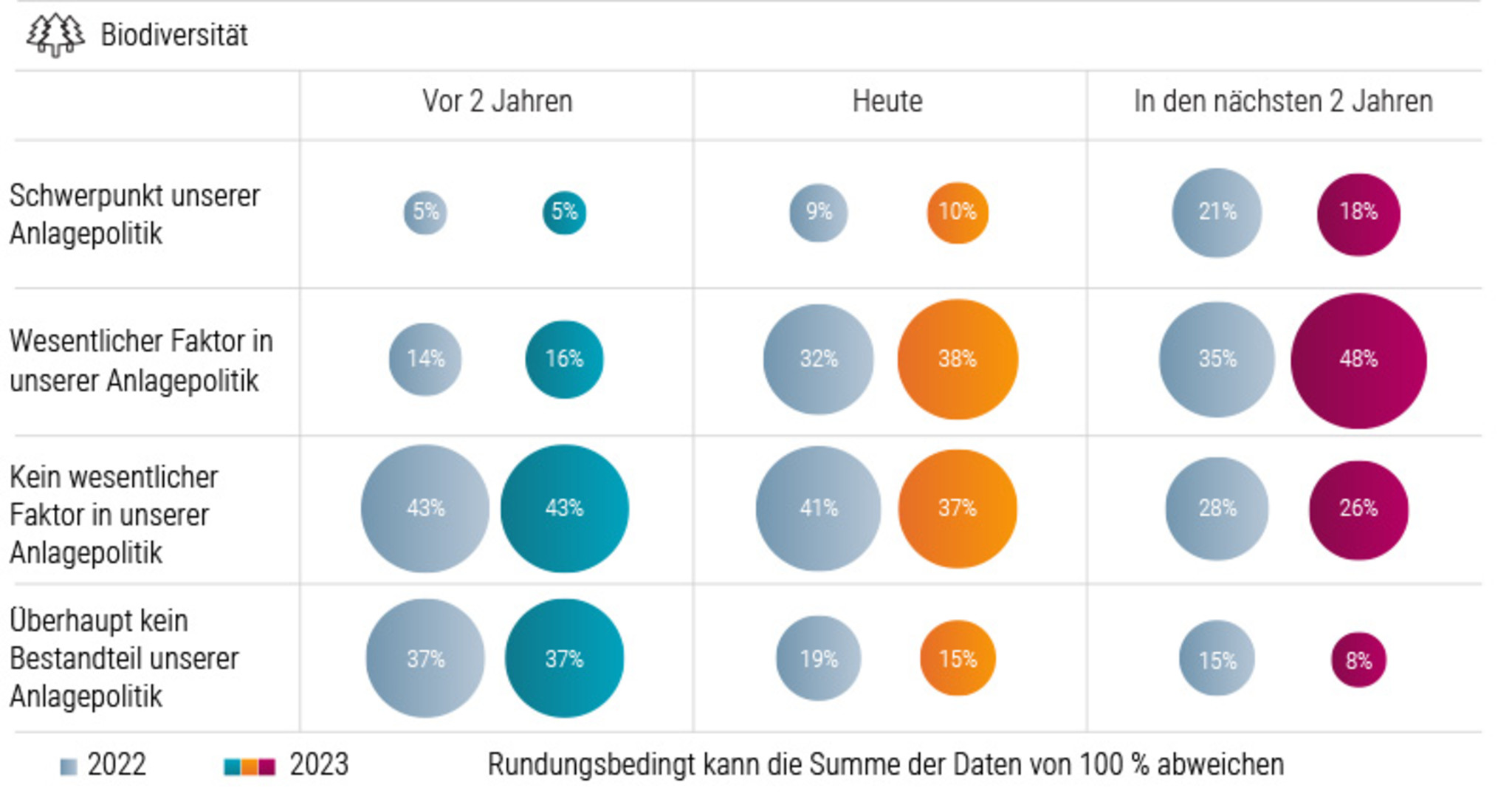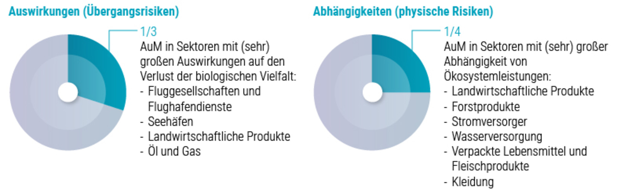 Für globale Investoren ist die Korrektur des Trends nicht nur eine erhebliche Herausforderung, sondern bietet auch zwei große Chancen. Wie Abbildung 2 zeigt, ist die erste Chance der Übergang zum Schutz der Biodiversität. Veränderungen von Produktionsmethoden und Konsumverhalten betreffen eine Branche mit einer Marktkapitalisierung von 2,3 Billionen US-Dollar.
