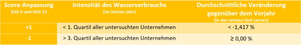 Tabelle 1: Wasserverbrauch und SDG-Scores