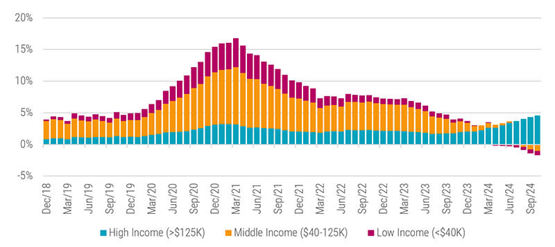 Ein wichtiges Thema, mit dem sich Anleger Anfang 2025 auseinandersetzen müssen, ist die offensichtliche Widersprüchlichkeit der politischen Agenda des neuen US-Präsidenten Trump und die Frage, wie diese Widersprüche aufgelöst werden sollen. Zugleich werden steigende Anleiherenditen und Inflationserwartungen unseres Erachtens die weltweite Haushaltsdisziplin erzwingen und die extremen Elemente eines jeden Tarifplans abmildern. Wir schließen zwar die Möglichkeit anhaltend hoher US-Anleiherenditen und eines starken USD nicht aus, sind aber der Meinung, dass wir dem Höchststand näher sind, als derzeit eingepreist ist. Anleger müssen darauf achten, dass sie ihre Portfolios nicht anhand vergangener Erfolge verwalten. Wir ziehen es vor, uns auf die strukturellen Wachstumstrends zu fokussieren, die unsere Aktien antreiben, da sie in der Regel viel beständiger und langlebiger sind als der typischerweise reaktive Konsens an der Wall Street.