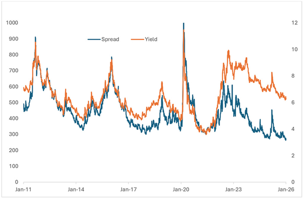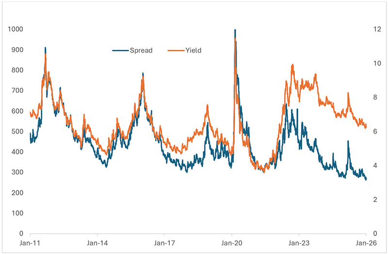 Quelle: Bloomberg Global High Yield Corporate Total Return Index Unhedged USD, Januar 2026