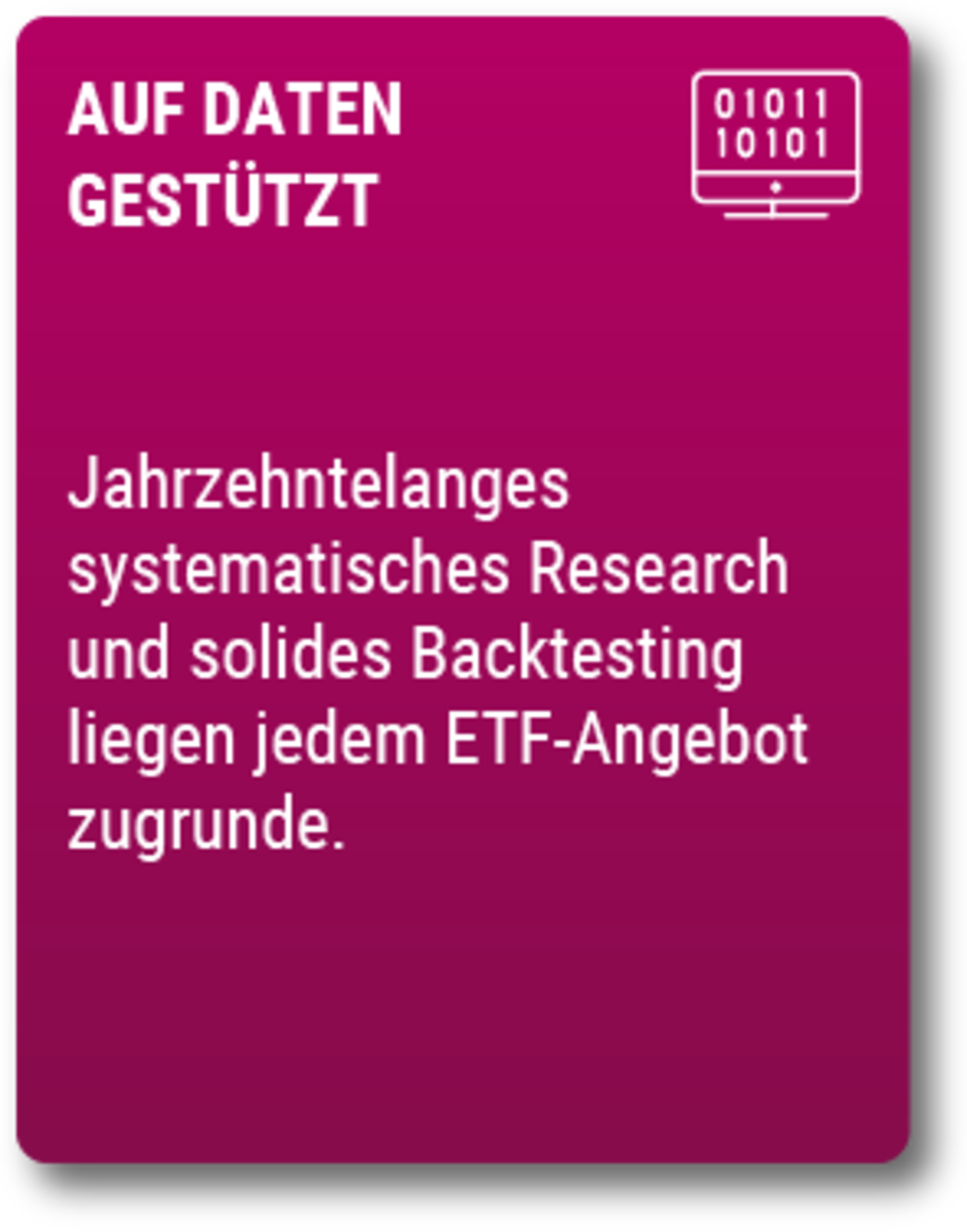 Dank jahrzehntelanger Anlageexpertise hat Robeco ein ETF-Angebot entwickelt, das sich auf Daten stützt und durch kontinuierliche Innovation verbessert wird. Daraus ergeben sich verschiedene Lösungen, die sich in ihrem Aufbau unterscheiden, aber in ihrer Philosophie konsistent sind. Sie wurden entwickelt, um stärkere, widerstandsfähigere Portfolios zu errichten.