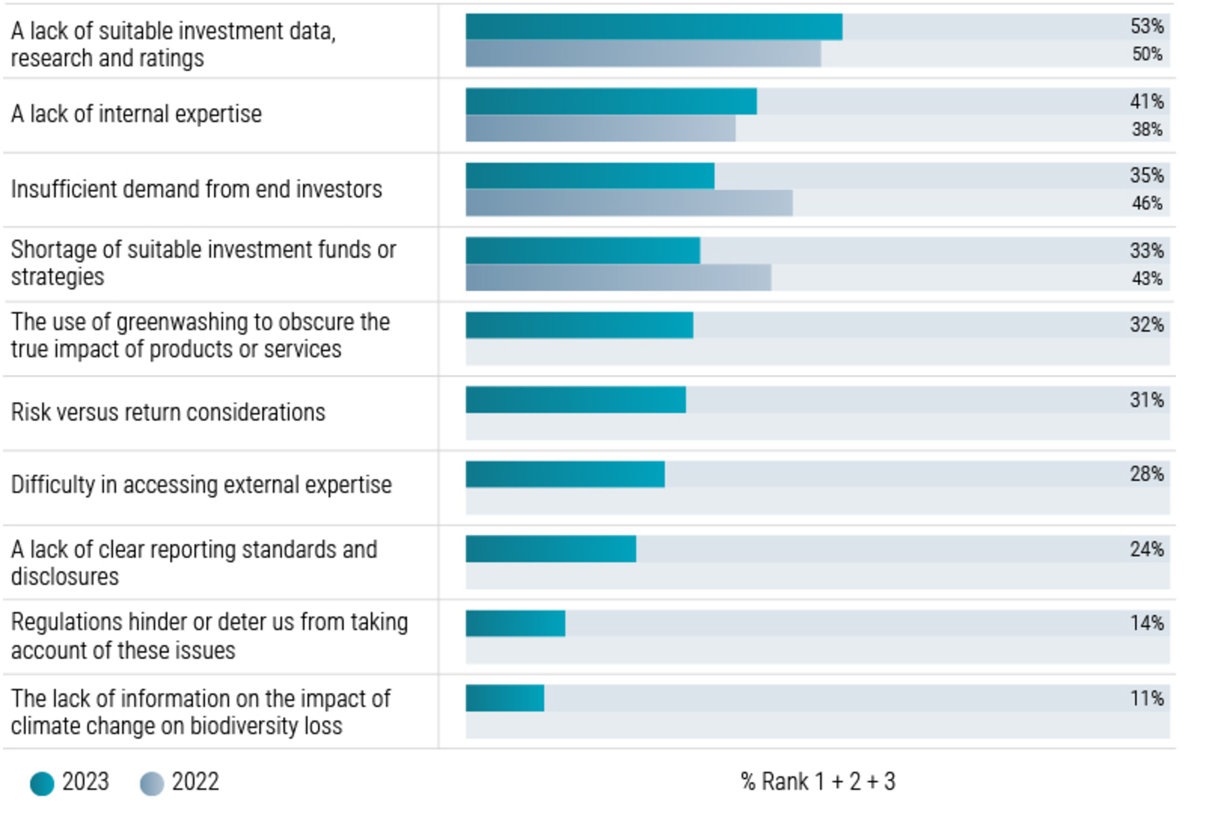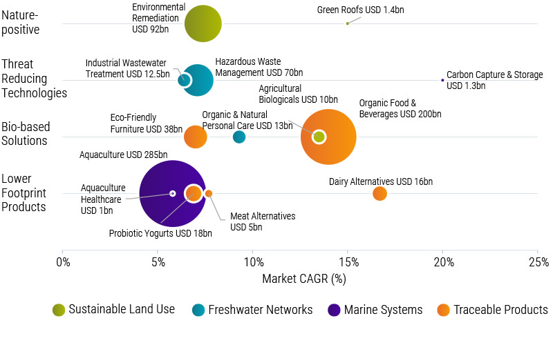 The second is in the solutions available. Technologies that can reduce threats, such as wastewater treatment, are worth around USD 800 billion. Moreover, bio-positive solutions such as organic plant protection or soil remediation offer a further USD 180 billion of investments. Such risks and opportunities are becoming more relevant and material for investors, as discussed in the next chapter.