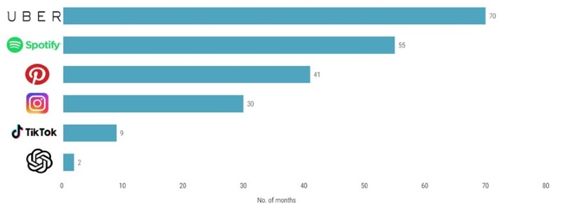 The same dynamic is driving the slow but steady rollout of 5G infrastructure worldwide, says Norris. “The acceleration in demand for data is staggering“ he says, pointing to the adoption cycle of novel platforms with ChatGPT reaching 100 million users in only two months1.