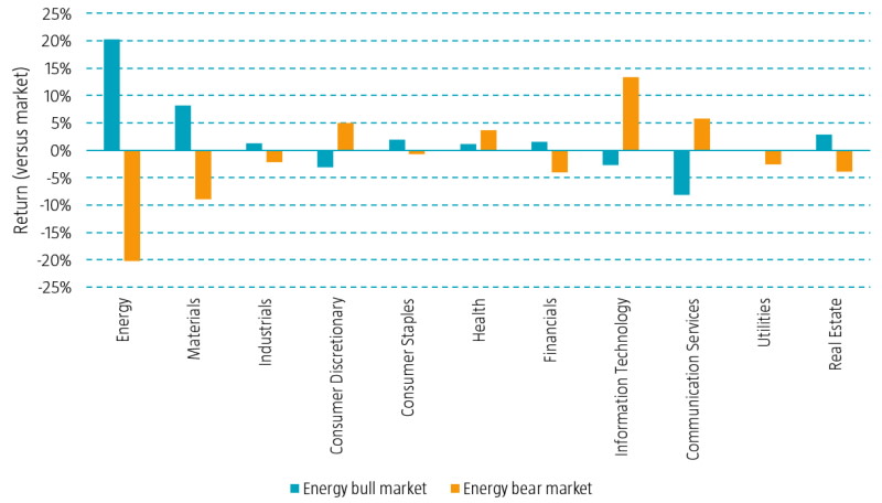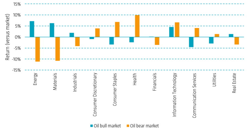 Figure 2 | Sector performance relative to market during oil bull regimes versus bear regimes, January 1995 to December 2021