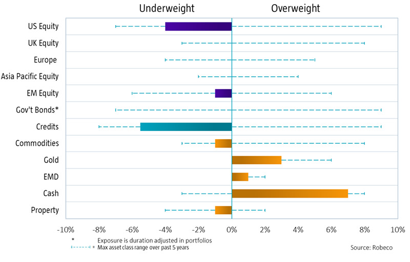 In portfolios we have been slightly underweight equities and underweight credit, with a tilt out of US equities. We are still long gold (in portfolios where restrictions allow) and have been raising cash positions. In our current outlook, a bounce in equity markets will be used to reduce equity beta further and rotate into more defensive and cheaper parts of the cross-asset universe. For stock and credit pickers, the indiscriminate sell-off will provide increased opportunity to generate alpha for quant and fundamental approaches.