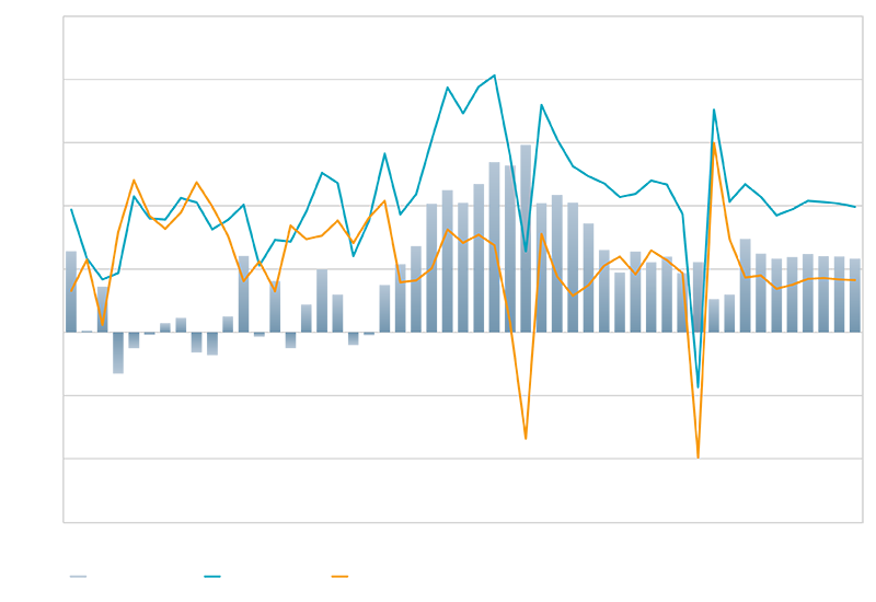 Exports (USD, trillion) are playing a bigger role in EM growth