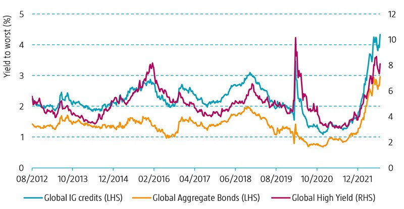 Bond holders have so far had a difficult time in 2022 as a surge in inflation and rising interest rates have pushed total returns for bonds into the red, alongside poor performances from other asset classes. But, with the repricing of bond markets, bond yields have also risen sharply and now provide an attractive entry point from which to build back bond exposure in a portfolio.
