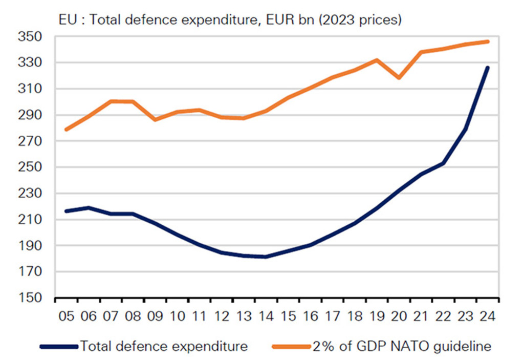 Source: Deutsche Bank, European Defence Agency. Note 2024 figure is estimate