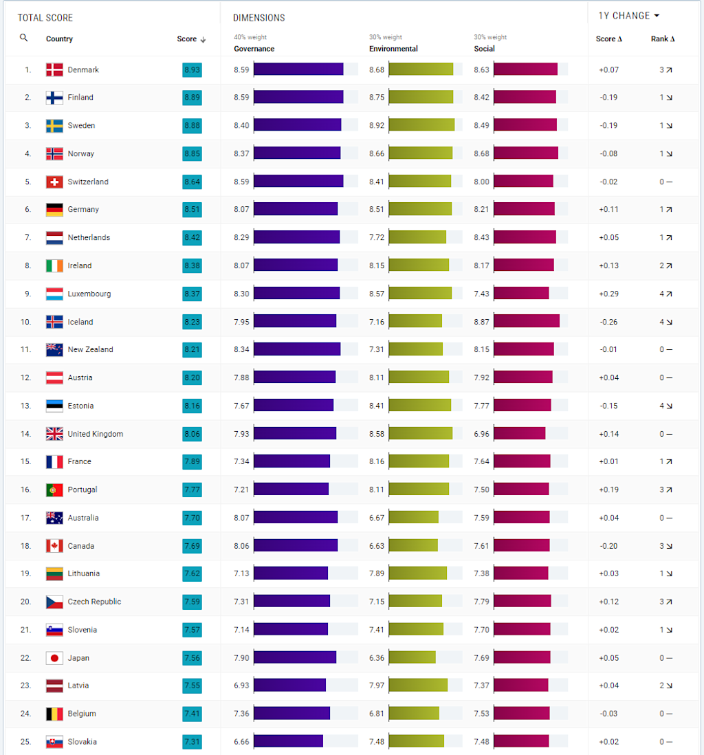 What are the most sustainable countries in the world? The Country Sustainability Ranking is a comprehensive framework for analyzing countries’ performance on a wide range of ESG metrics.