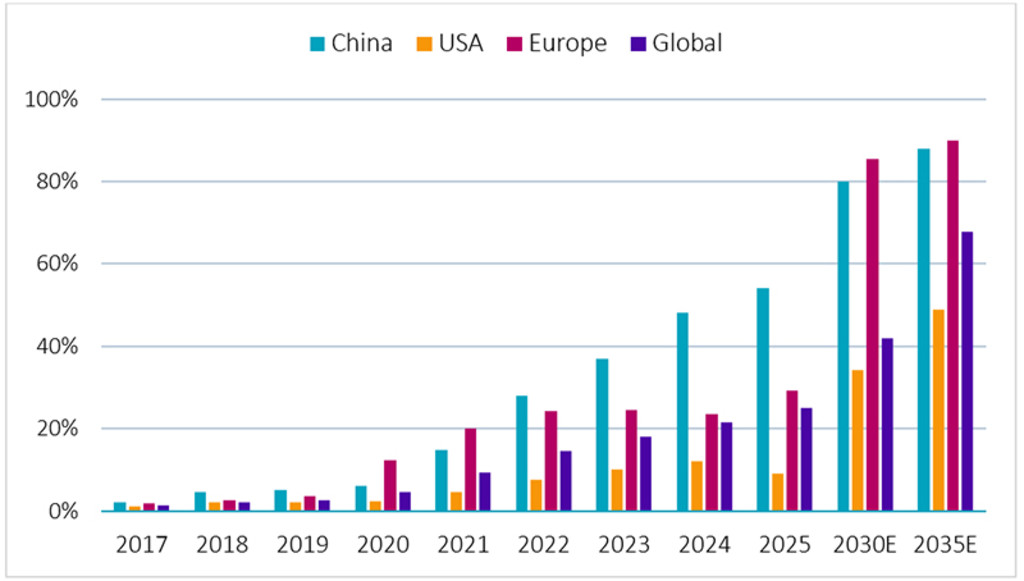 Figure 5 – EV penetration > 80% in major markets in less than four years