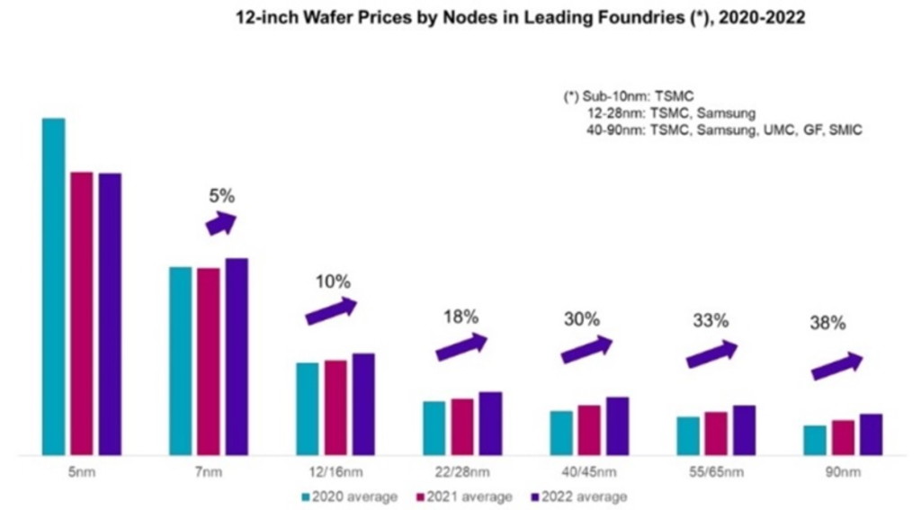 Accordingly, chip manufacturers have reacted with selective price increases that reflect the tightness of the market at different node levels. Figure 1 illustrates price hiking mechanism of leading fabs across different nodes for 2021 and 2022.7