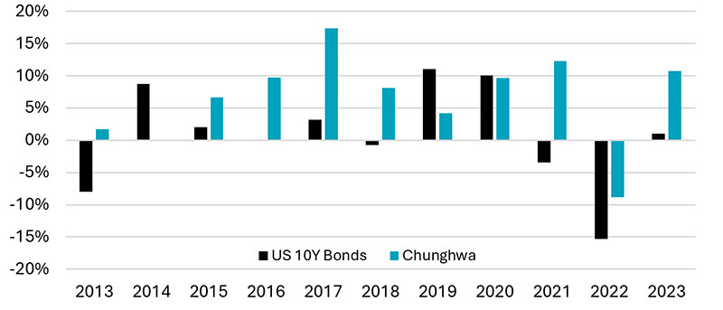 Figure 4: Chunghwa Telecom (TW) vs US 10-year Treasuries USD returns