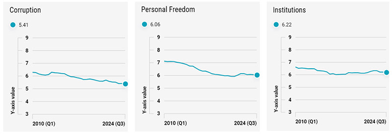 Figure 4 – More corruption, less freedom and weakened institutions under Orbán