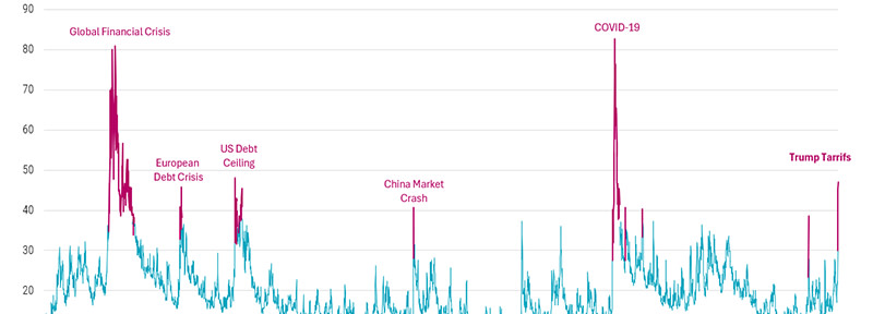 We've had the view for several months that credit spreads IG and high yield have been very, very tight and therefore not pricing in much risk going forward. And we can see that tariffs have affected how investors are looking at those spreads. And we've seen spreads blow out. One area of interest that we've looked at where we see spreads are cheaper than the developed market, IG and high yield, is emerging market debt. But the one headwind we see here, despite the valuations being cheaper, has been the US dollar. So if we start to see the US dollar weakened through these tariff announcements, then this will turn from a headwind into a tailwind for emerging market debt and actually releasing that value that we can see in those markets. And the other area that we look to in terms of more sector-specific views is looking at what's happening in the trade financing area. And we can see that from 2008, where you started to see pressures on banks and credit markets, that trade financing just dried up completely. And that's what sent sort of a financial market event into the real economy and trade just drying up overnight. So that's an area that we're definitely monitoring.