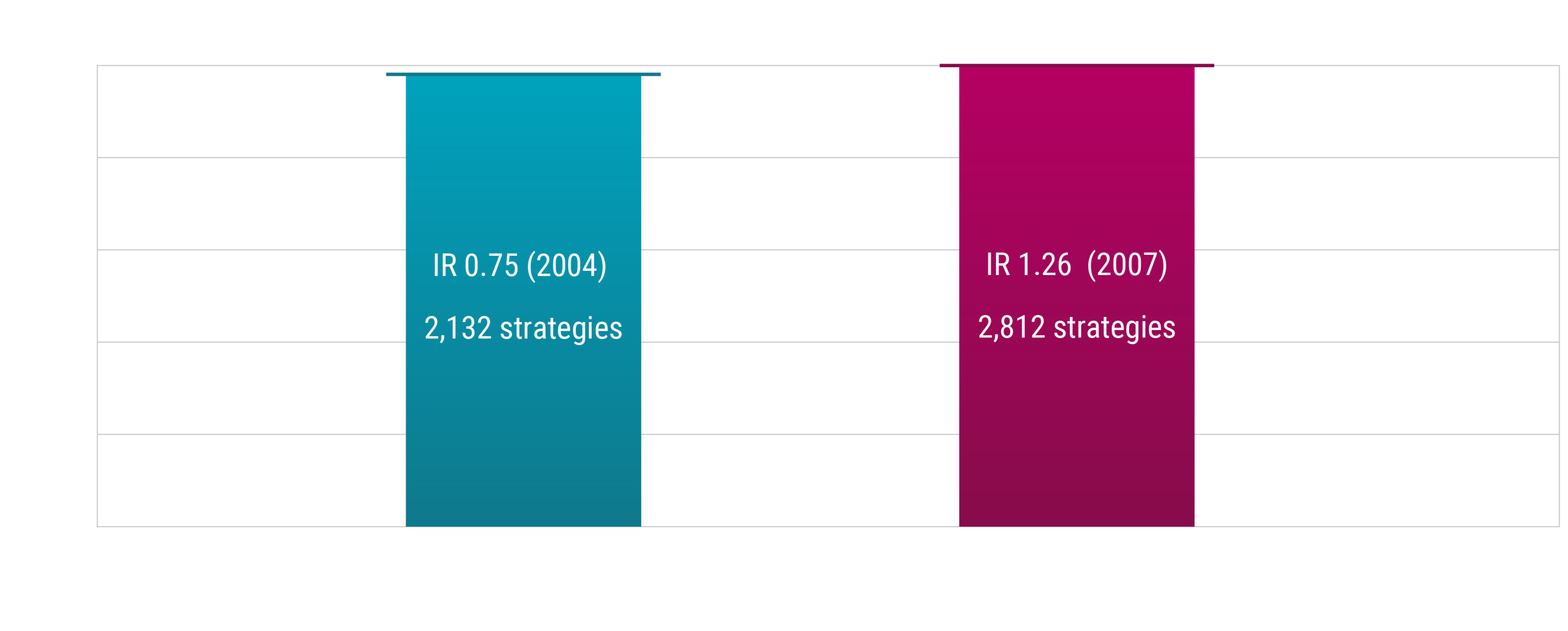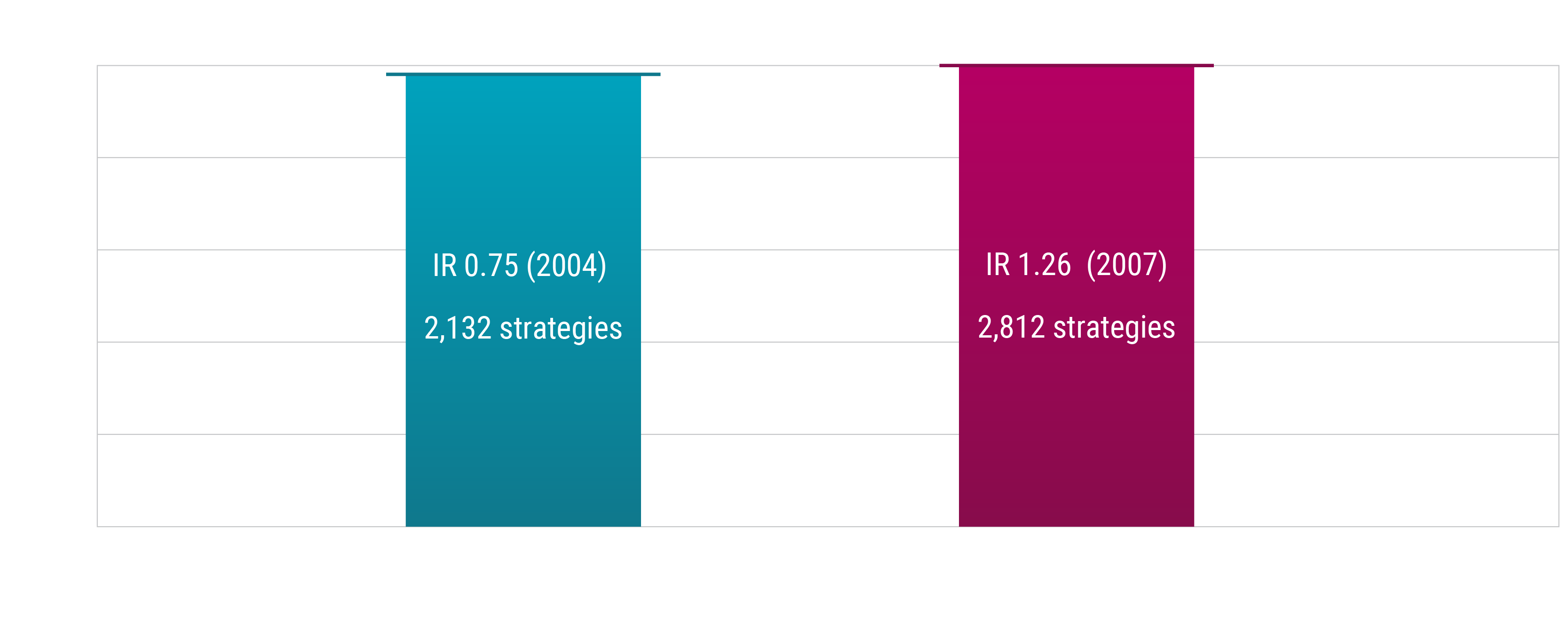 For this analysis we extract performance data from the eVestment database, which contains over 16,000 strategies. We narrow this down to a more representative sample by applying the following filters: (i) only consider equity strategies, (ii) remove single country (e.g. Switzerland or India) and single sector strategies (e.g. health care or REITS strategies), (iii) remove micro-cap stock strategies, (iv) remove strategies with a tracking error below 0.5% (all index strategies, manually verified), and (v) remove strategies with shorter live track records than our strategies. After applying these filters, we have peer groups consisting of 2,132 broad equity strategies for our developed markets enhanced indexing strategy (with data going back to 2004) and 2,812 broad equity strategies for our emerging markets enhanced indexing proposition (data going back to 2007).