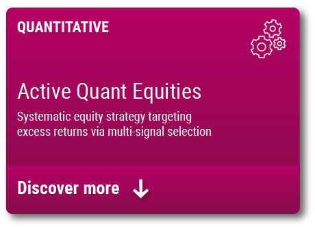 As developed markets become ever more concentrated, investors who seek alpha within a moderate risk budget can benefit from systematic investment approaches that keep emotions at bay. Our Active Quant strategy is designed to analyze vast amounts of potential opportunities and exploit market inefficiencies resulting from predictable patterns. It uses the breadth of the investment universe to its advantage in its aim of delivering consistent, sizable excess returns.