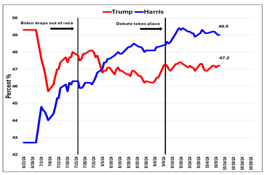 Harris has a slight lead