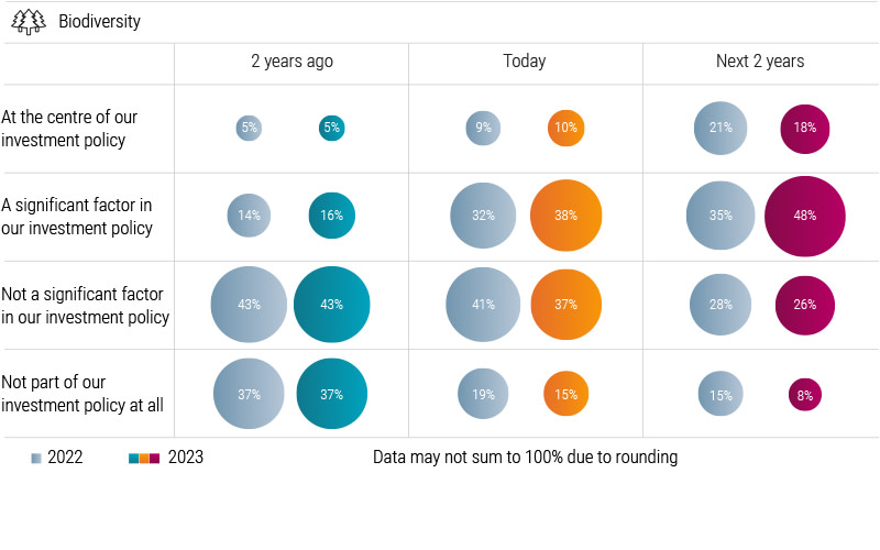 The second is in the solutions available. Technologies that can reduce threats, such as wastewater treatment, are worth around USD 800 billion. Moreover, bio-positive solutions such as organic plant protection or soil remediation offer a further USD 180 billion of investments. Such risks and opportunities are becoming more relevant and material for investors, as discussed in the next chapter.