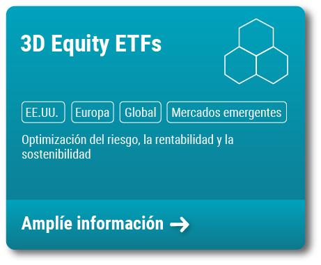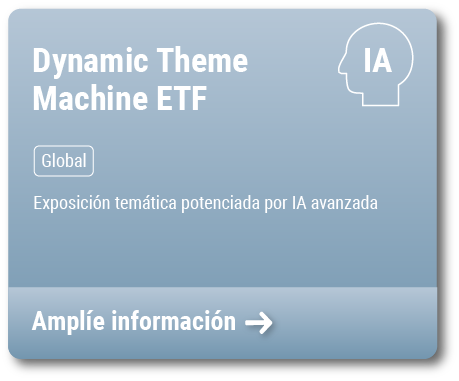 Nuestros ETF de renta variable incluyen estrategias 3D (las cuales son una parte fundamental de nuestra oferta de indexación mejorada, que busca el equilibrio entre riesgo, rentabilidad y sostenibilidad) y el ETF Dynamic Theme Machine, que incorpora la IA para detectar temáticas emergentes y consolidadas e invertir en ellas.