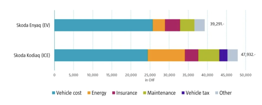 2En Estados Unidos y Suiza, se ha realizado un estudio comparativo del Skoda Kodiaq (un VCI) con su alternativa eléctrica, el Skoda Enyaq.