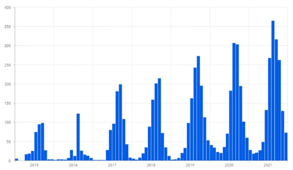 In the US, nearly 1,700 HAB-related warnings and public health advisories were issued nationally in 2021, a considerable increase since 2015 when the EPA formal collections and collations from states began (see Figure 1).