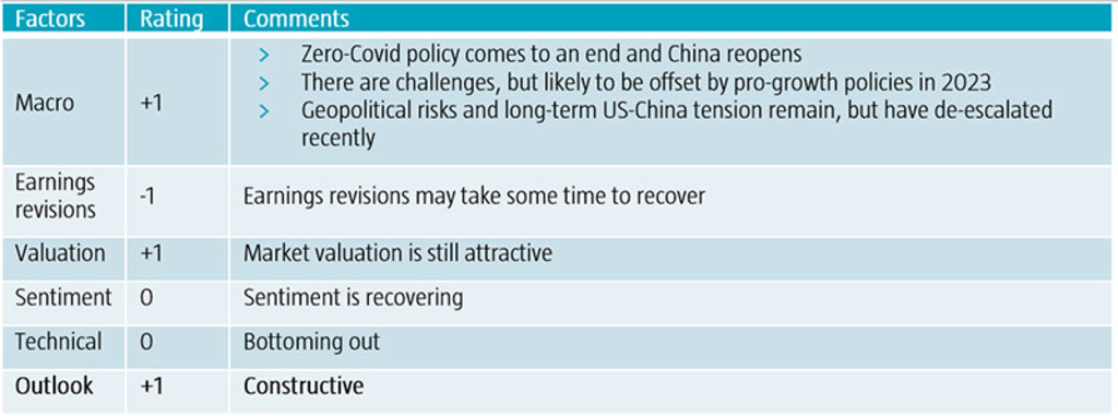 This is how we summarize the current outlook for investors in China based on our five-factor model.