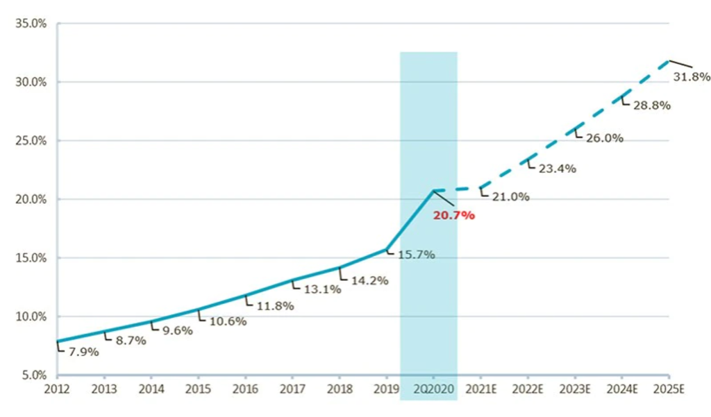 Mais, quand ils ont compris que les restrictions de déplacement resteraient en place beaucoup plus longtemps que prévu initialement, ils ont changé de comportement. Tout d'abord, de nouveaux acheteurs se sont aventurés en ligne, à savoir les personnes âgées. La réouverture totale de l'économie et le retour à la vie normale ne devraient rien changer à cela.