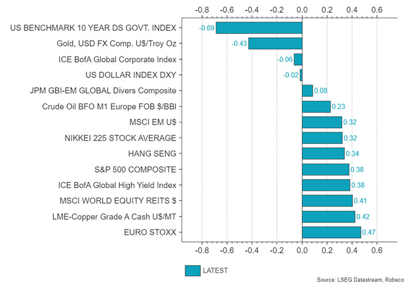 Yield curves are steepening significantly in many developed markets as a reflection of mounting inflationary pressures. Credit markets are widening, but the extent of this appears less pronounced than expected, given the pace of the sell-off in US equities. European credit spreads are widening in tandem with the weakening of EUR equities.