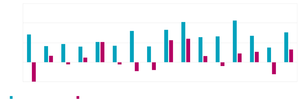 Quand on analyse les deux dernières années, on constate que les marchés actions mondiaux ont connu un mouvement haussier prolongé avec une volatilité relativement faible, une forte croissance des bénéfices et une inflation réduite, temporairement interrompu en mars 2020 par le vent de panique lié à la pandémie.