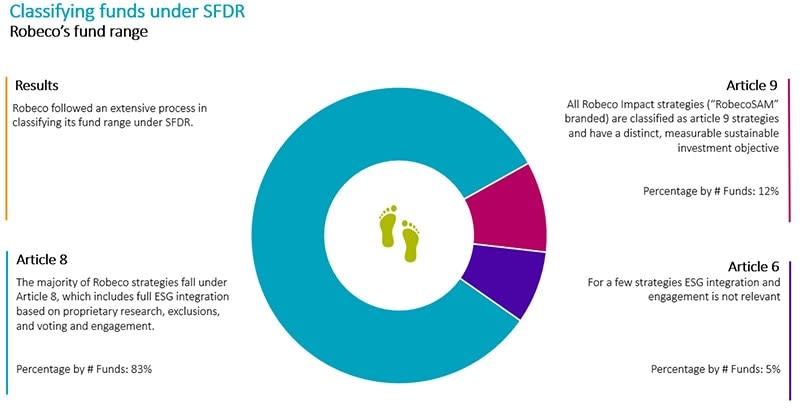 Robeco a mis en place une équipe de projet ad hoc composée de plus de 40 personnes chargées d’intégrer tous les aspects du plan d’action, une procédure qui s’effectuera en plusieurs phases. La première échéance importante du 10 mars 2021 concernant la catégorisation des fonds et la publication requise d'informations dans les prospectus des fonds et sur les sites web a été respectée sans aucun problème.