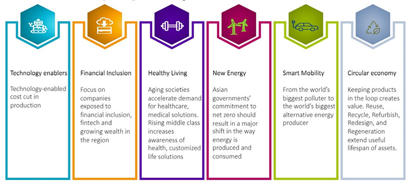 Thèmes d’investissement clés de la stratégie Robeco Sustainable Asian Stars