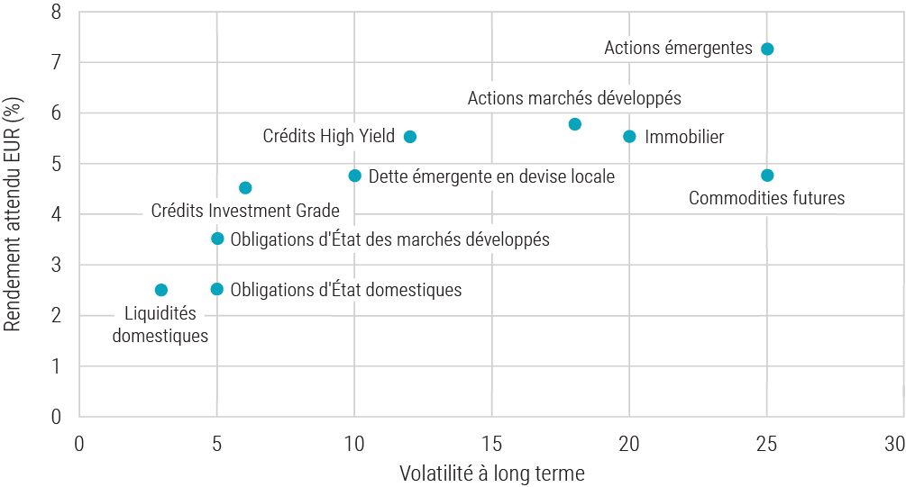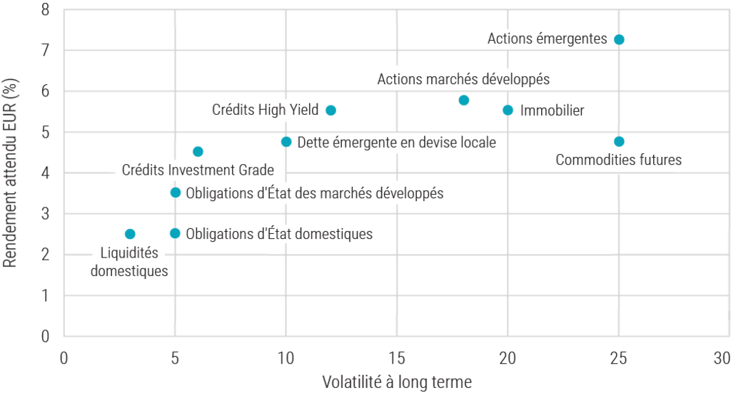 Rendements attendus des classes d'actifs par rapport à la volatilité à long terme