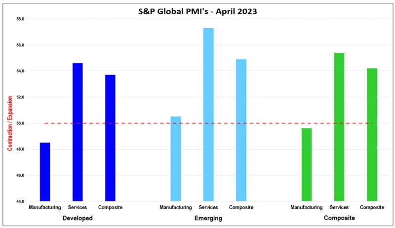 Con un PMI inferiore a 50, il settore manifatturiero è in contrazione, mentre il terziario è ancora forte. Fonte: Bloomberg, S&P Global