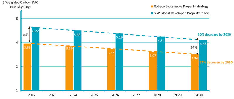 Figure 1 – Decarbonization pathways for the S&P Developed Property Index and Sustainable Property strategy