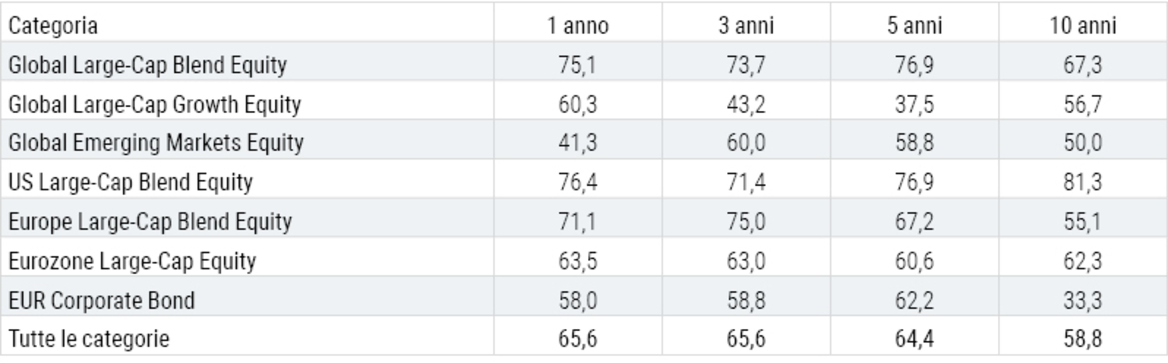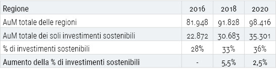 Tabella 1: La quota delle masse in gestione investita in modo sostenibile